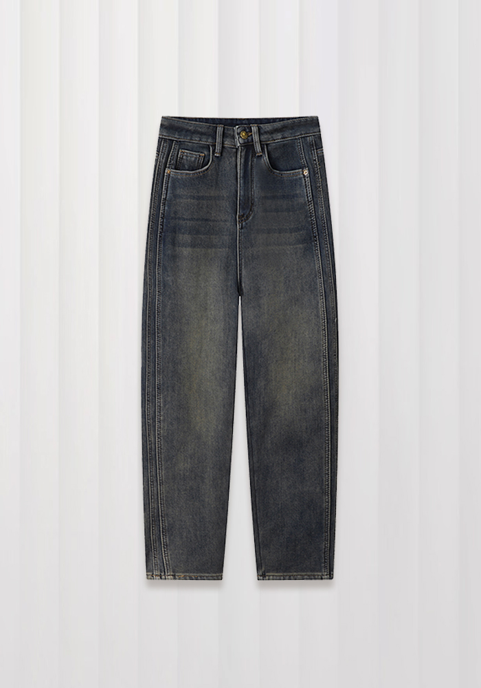 Velvet thickened casual jeans for women retro topstitched loose wide leg pants