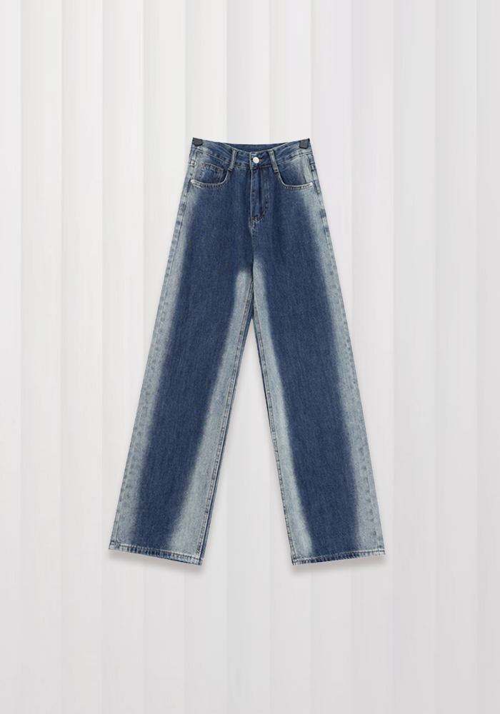 Gradient washed jeans women's design niche straight pants casual pants