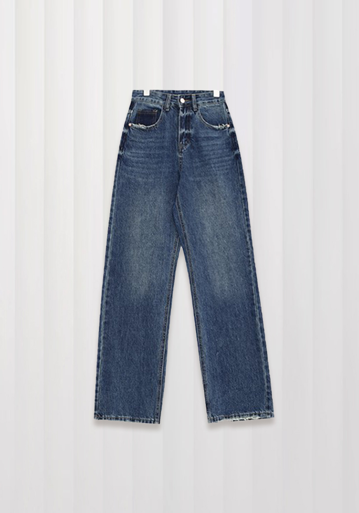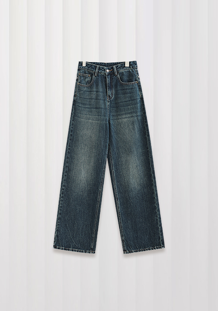 Straight jeans women's retro blue gradient high waist wide leg casual pants