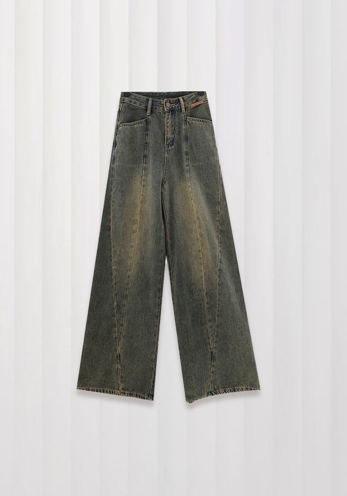 Green high waist straight jeans for women adjustable high waist low waist loose wide leg pants