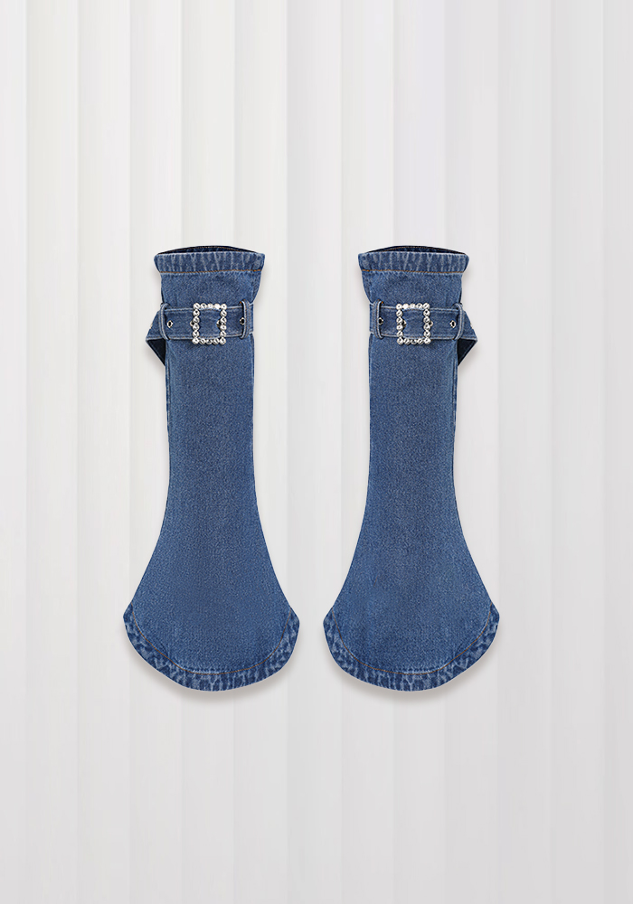 Japanese design mid-calf horn piled pants boots denim leg covers