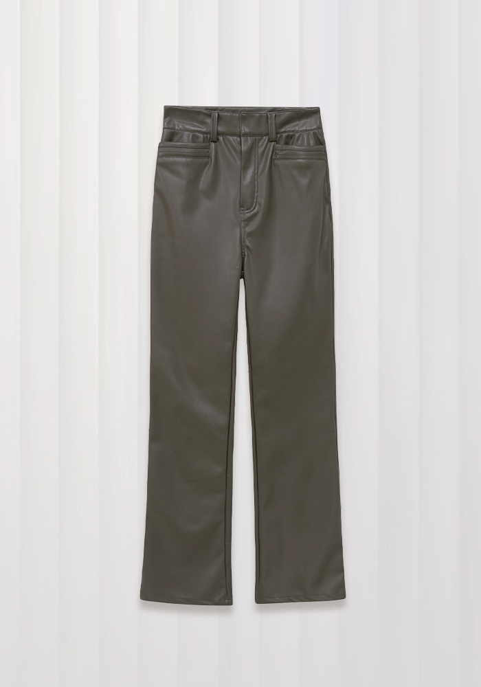 Dark green brown bootcut tight leather pants
