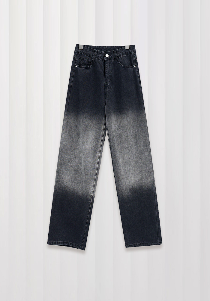 Black washed gradient straight jeans for women high waist slim versatile wide leg pants