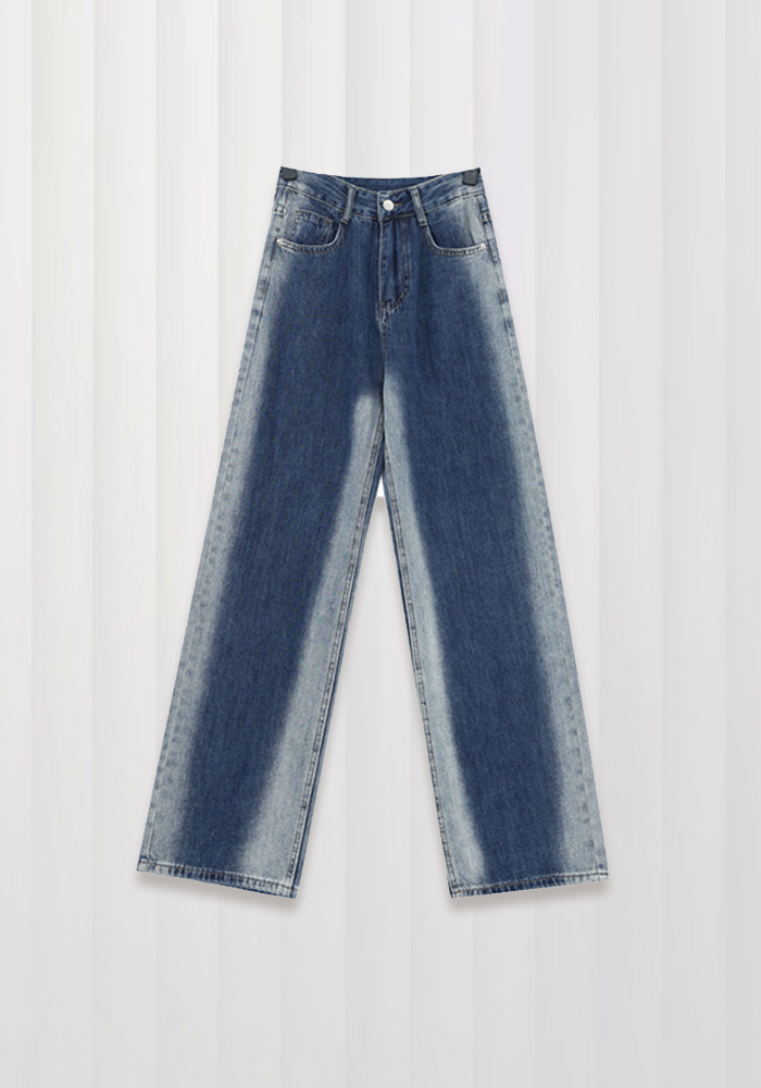 Gradient washed jeans women's design niche straight pants casual pants