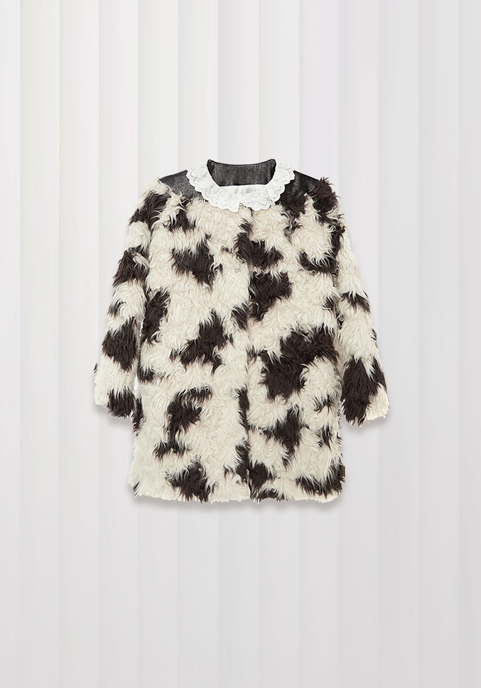 Lace cow pattern eco-friendly fur coat